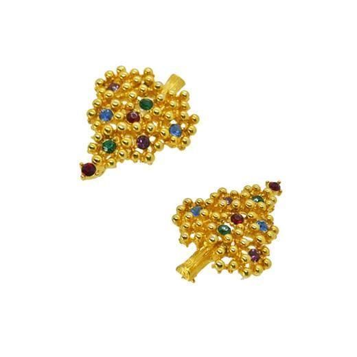 ツブツブとした小さな球でレッド、グリーン、ブルーのラインストーンを囲んだお洒落なアイテム、比較的小さなサイズのためシーンは選ばず、コーディネイトにクリスマスの雰囲気ををプラスします。大きさは約30mm×45mm、重さ12,8g、コンディションは多少の経年感はありますがヴィンテージとしてのご使用には差し支えがない程度です。裏側にEISENBERGの刻印が入っています。