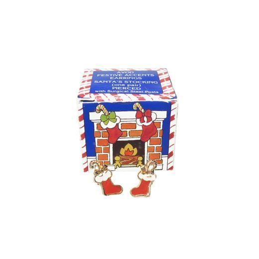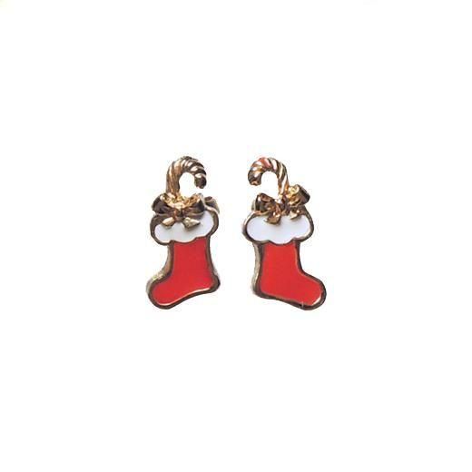 エイボン製、1992年に販売されたクリスマスコレクション「サンタズ・ストッキング」というネーミングの小さな赤いソックスのピアスです。