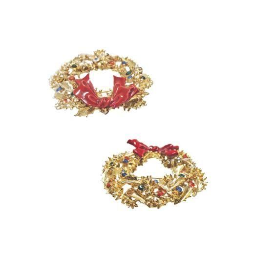 アート製、ゴールドカラーのクリスマスリースのブローチです。