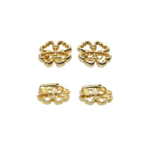 金色のハート風フォルムのモチーフを4個つなげてお花のような形にまとめたフェミニンなアイテム、タイムレスで上品なデザインはコーディネイトやシーンを選ばず耳元で大人の可愛らしさを引き立てます。大きさは直径約21mm、重さ各5,9g、コンディションは多少の経年感はありますがヴィンテージとしてのご使用には差し支えがない程度です。金具にSARAHCOVの刻印が入っています。