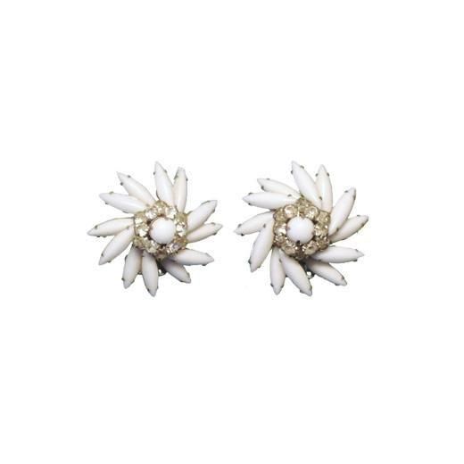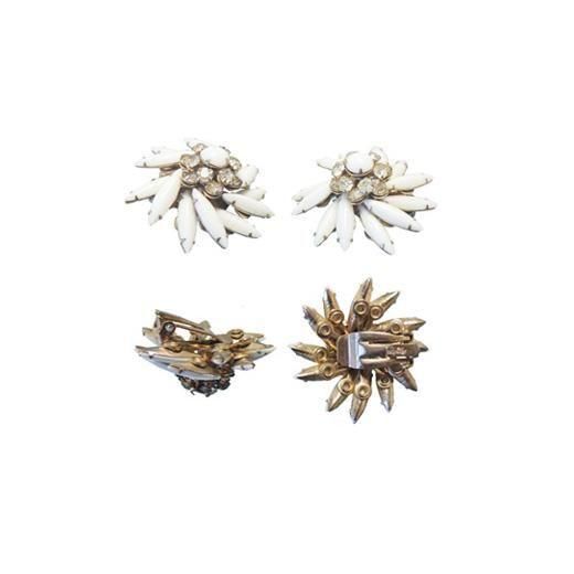 ジュディー・リー製、モードなミルク色ラインストーンのイヤリングです。