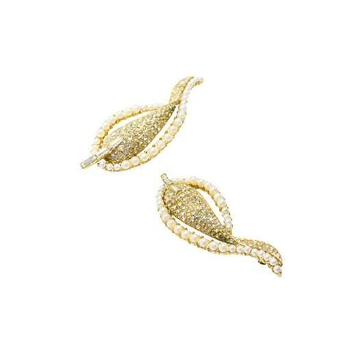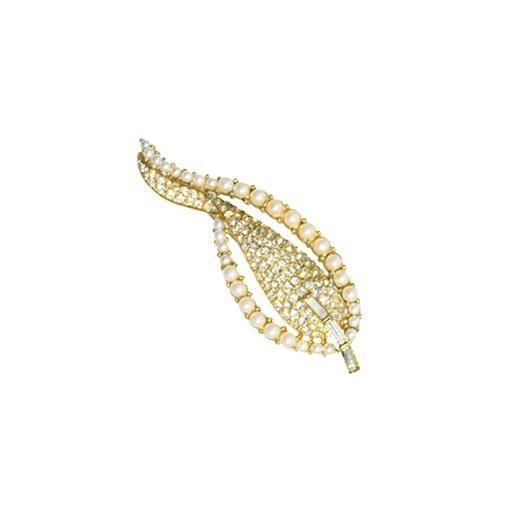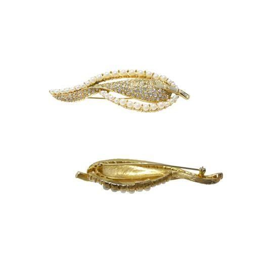 マーベラ製、ラインストーンが煌くエレガントなリーフモチーフのブローチです。