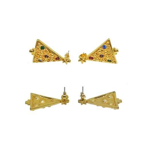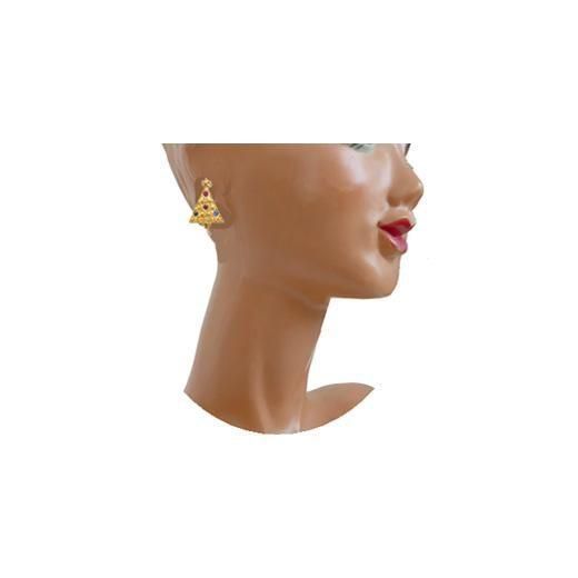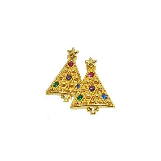 ツリーは金色のドットとレッド、グリーン、ブルー、パープルのラインストーンで装飾され煌きを演出、クリスマスシーズンの耳元に華やかな色どりをそえます。大きさは約31mm×23mm、重さ各4,3g、コンディションは多少の経年感はありますがヴィンテージとしてのご使用には差し支えがない程度です。ピアスのキャッチに一か所小さくAVON の刻印が入っています。