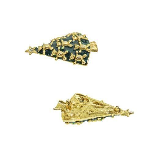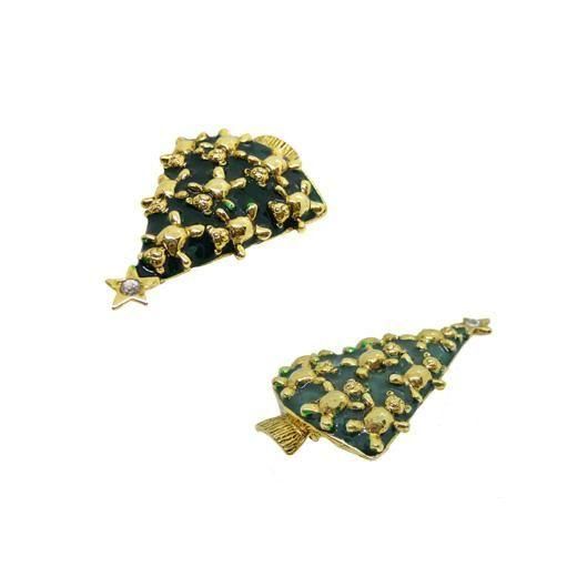 艶やかなグリーンにペイントされたツリーに金色のテディーベアを全部で9匹飾った存在感抜群のラブリーなデザインが魅力的、クリスマスシーズンのコーディネートにフェミニンな可愛らしいさをプラスするアイテムです。大きさは約42mm×64mm、重さ24,4g、コンディションはグリーンのペイントがテディーベアにはみ出している部分がありますが外観には大きく影響しない程度、その他多少の経年感はありますがヴィンテージとしてのご使用には差し支えがありません。裏にLIAの刻印が入っています。