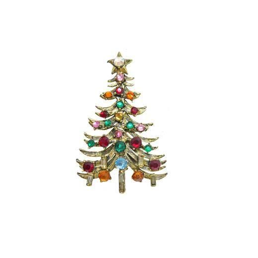 ホリークラフト製、色とりどりのラインストーンが美しく煌くクリスマスツリーブローチです。