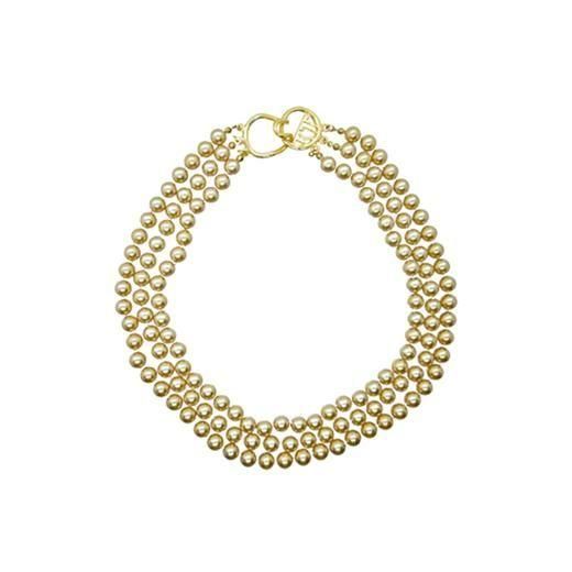 ケネスジェイレーン製、シャンパンゴールド色ガラスパールの華やかな三連ネックレスです。