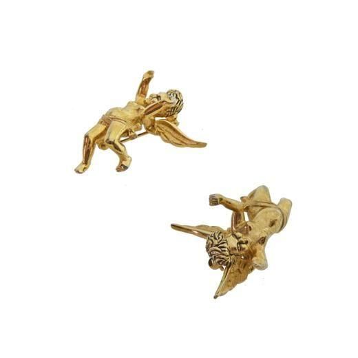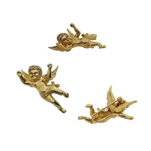 両手を上げ翼を広げて楽しそうに空を飛んでいるかような可愛らしい天使の表情は、見ている人の心を和ませます。また小さいながらも細部まで丁寧に作られたフォルムがクラフトマンシップを感じさせるひと品はコーディネイトにも合わせやすく幅広いシーンで活躍し周囲の視線を引きつけます。大きさは約42mm×25mm、重さ9,5g、コンディションは多少の経年感はありますがヴィンテージとしてのご使用には差し支えがない程度、裏に8075PとBOUCHERの刻印が入っています。