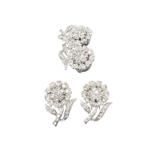 コロ・デュエット製,ラインストーンで飾られた小さなお花のブローチです。