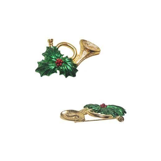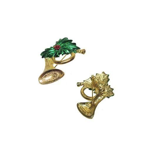 ゲリーズ・リーフとラッパのクリスマスブローチ