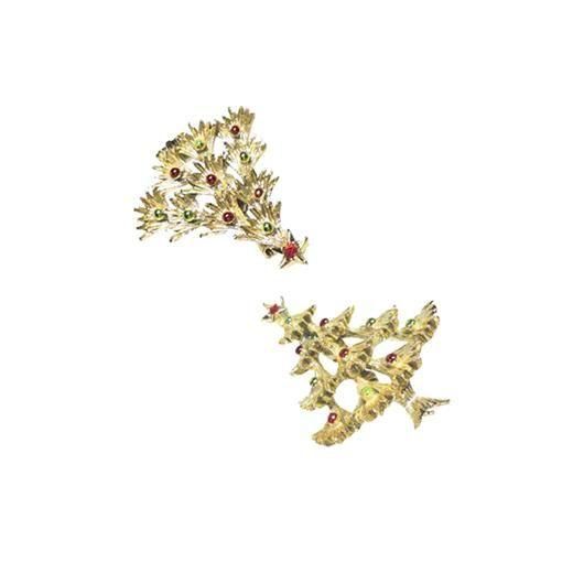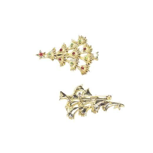 赤いラインストーンで飾られたお星さまが薄金色のツリーのトップに飾られアイキャッチーなポイントになっています。大きさは約40mm×55mm、重さ20,1g、コンディションは多少の経年感はありますがヴィンテージとしてのご使用には差し支えがない程度だと思います。裏側にGERRY'Sの刻印があります。
