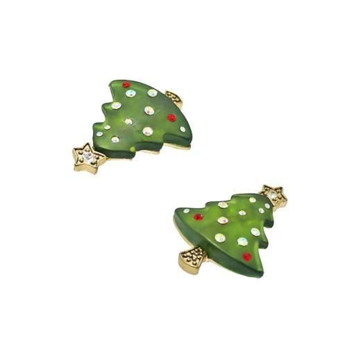 樹脂製半透明のモスグリーンのツリーはオーロラ色に煌くラインストーンと赤いラインストーンで装飾、トップにラインストーンを一石セッティングしたお星さまを飾ったお洒落なデザインとぷっくりとしたフォルムが魅力的です。大きさは約44mm×57mm、重さ18,3g、コンディションは多少の経年感はありますがヴィンテージとしてのご使用には差し支えがない程度です。裏にKCの刻印がありますがブランドの詳細は不明です。
