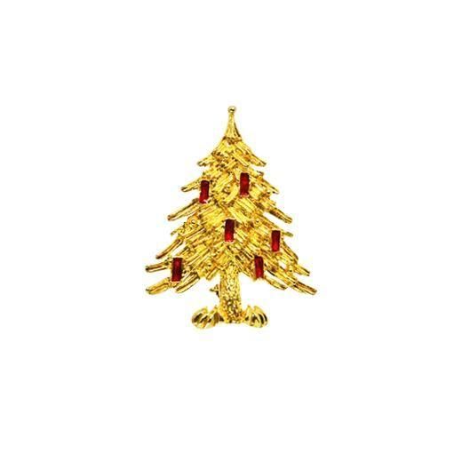 リア・赤いキャンドルを飾ったクリスマスツリーのブローチ
