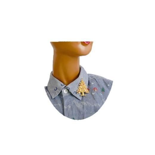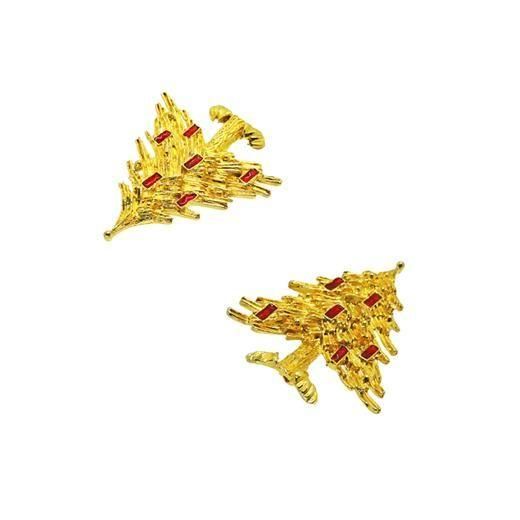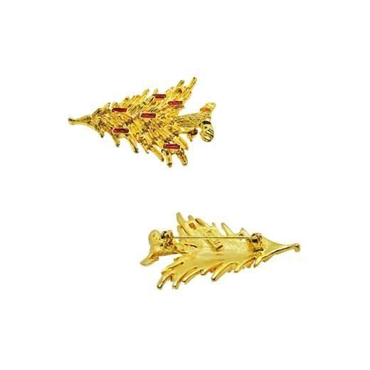ゴールドカラーのクリスマスツリーは小さな金色のドットと透明の赤いペイントをほどこしたキャンドルをイメージさせるモチーフで装飾されたシンプルなデザインが魅力的、クリスマスの装いのキャッチーなポイントにお勧めします。大きさは約49mm×38mm、重さ11,5g、コンディションは多少の経年感はありますがヴィンテージとしてのご使用には差し支えがない程度だと思います。裏にLIAの刻印が入っています。