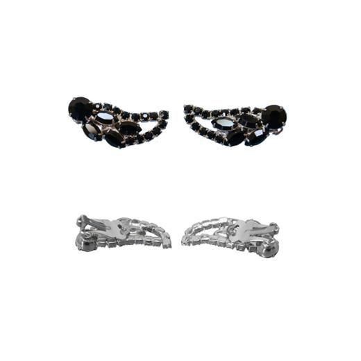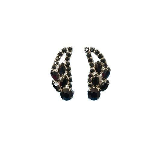 大小のラウンド型とマーキスカットのラインストーンを使い分け緩やかなカーブを描くエレガントな縦長シェープにしたアイテム、繊細さとモノトーンの色彩が醸し出すモードな雰囲気が魅力的、シルエットの美しさが光るひと品です。ラインストーンはすべて爪留め仕上げ、全体の大きさは約36mm×18mm、重さ各14,1g、コンディションは多少の経年感はありますがヴィンテージとしてのご使用には差し支えがない程度です。