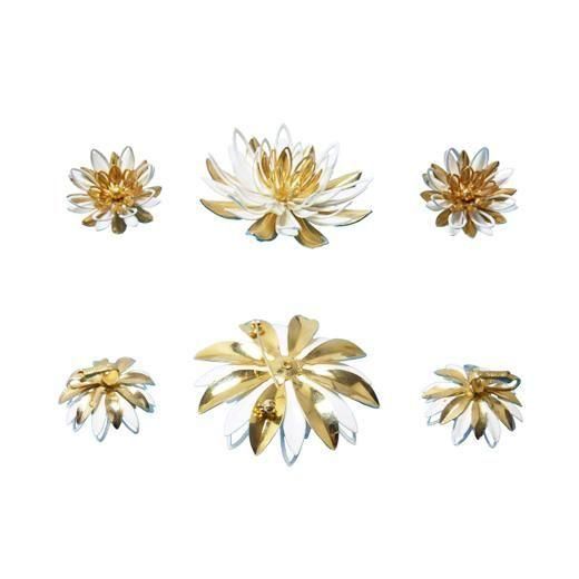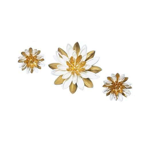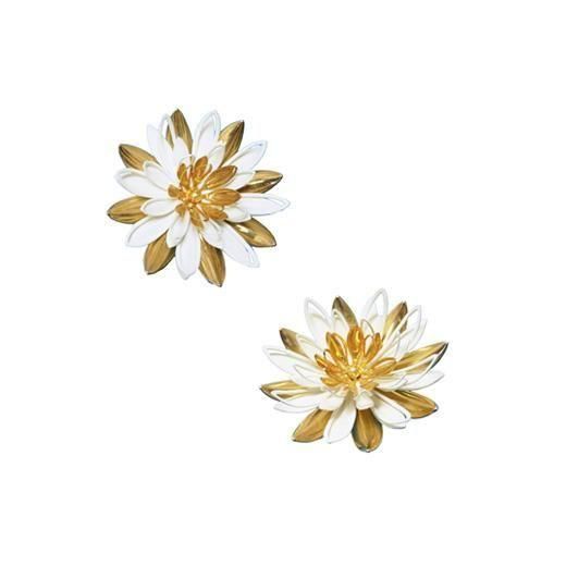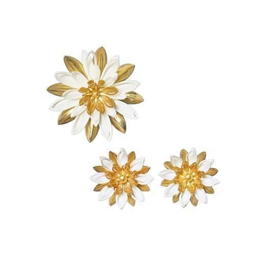 サラコヴェントリー・ゴールドとホワイトの睡蓮のブローチセット
