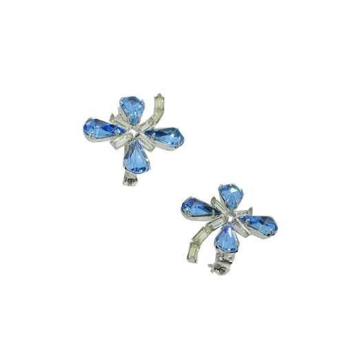 ブルーの雫型ラインストーンとスクウェアー型クリアラインストーンで四葉のクローバーのようなフォルムを作った綺麗なブローチは爽やかな色合いとミニサイズが魅力的、カジュアルなスタイルにもマッチし装いのさりげないお洒落のアクセントとしておすすめのアイテムです。大きさは約28mm×24mm、重さ3,1g、コンディションは多少の経年感はありますがヴィンテージとしてのご使用には差し支えがない程度です。