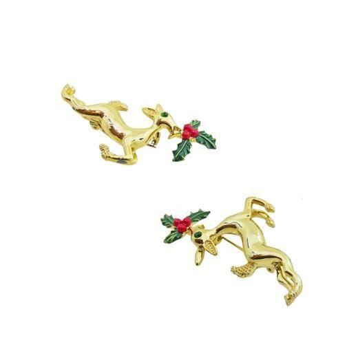 ゲリーズ製、可愛い金色のトナカイとヒイラギのクリスマスブローチです。