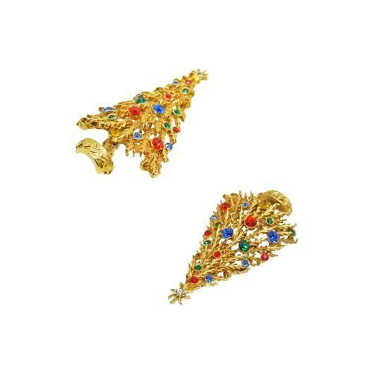 大小のカラフルなラインストーンで飾られたツリーはアート社らしい細部にまで散りばめたこだわりが感じられ独特の空気感が際立っています。ツリーのトップで輝くお星さまと小さな植木鉢がチャームポイントです。大きさは約33mm×62mm、重さ12,3g、コンディションは多少の経年感はありますがヴィンテージとしてのご使用には差支えがない程度だと思います。裏にARTの刻印が入っています。