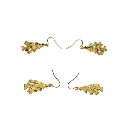 グリーンとレッドのラインストーンがクリスマスのムードを盛り上げ、ライン模様で装飾された反り返った枝など丁寧な作りが魅力的です。大きさは約19mm×25mm(フックを除く)重さ各2,9g、ピアスはご希望でイヤリングに変更できますので、注文時備考欄にご記入ください。コンディション多少の経年感はありますがヴィンテージとしてのご使用には差し支えがない程度です。刻印はありませんがワイス製から刻印がある同じデザインのクリスマスツリーブローチが販売されていました。セット販売のアイテムは片方のみ刻印がある場合も数多くありますのでこれは刻印のないWEISS製だと思われます。