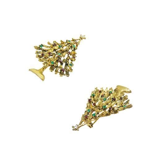 ワイス・シックな色彩のクリスマスツリーブローチ