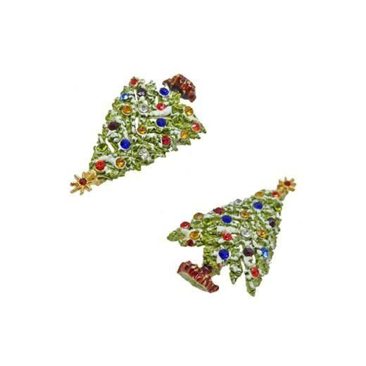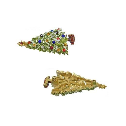 グリーンに彩色されたツリーにはホワイトペイントを厚く塗り雪が積もった雰囲気を上手に表現しカラフルなラインストーンがクリスマスの華やかなイメージを演出、美しい造形も魅力のひとつです。ブローチの大きさは32mm×58mm、重さ15,0g、コンディションは多少の経年感はありますがデリケートなヴィンテージのエナメル仕上げのアイテムとしては良好でヴィンテージとしてのご使用には差し支えがない程度です。裏にARTの刻印があります。